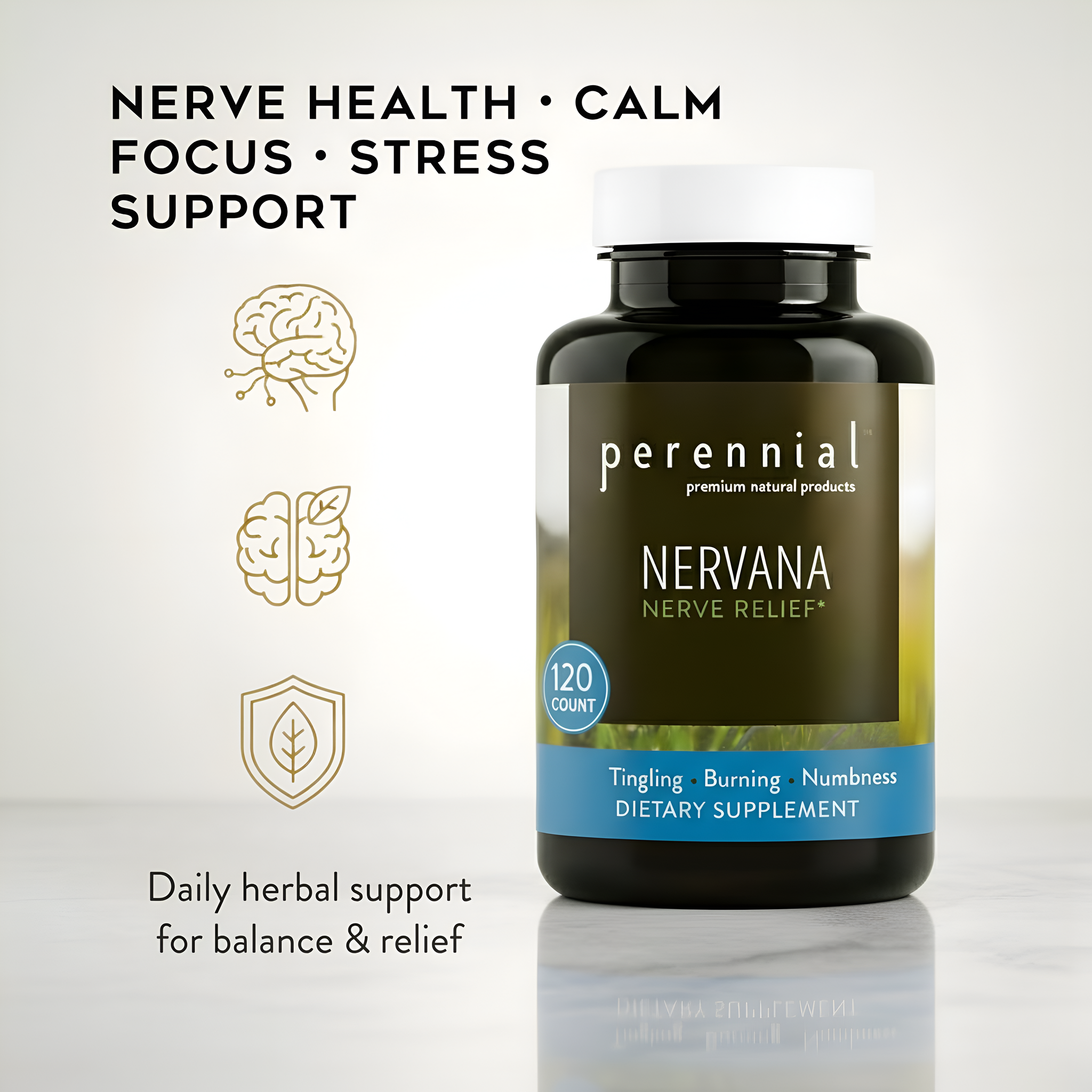 Nervana blends five time-honored botanicals to soothe and strengthen the nervous system, promoting calm focus and natural resilience.